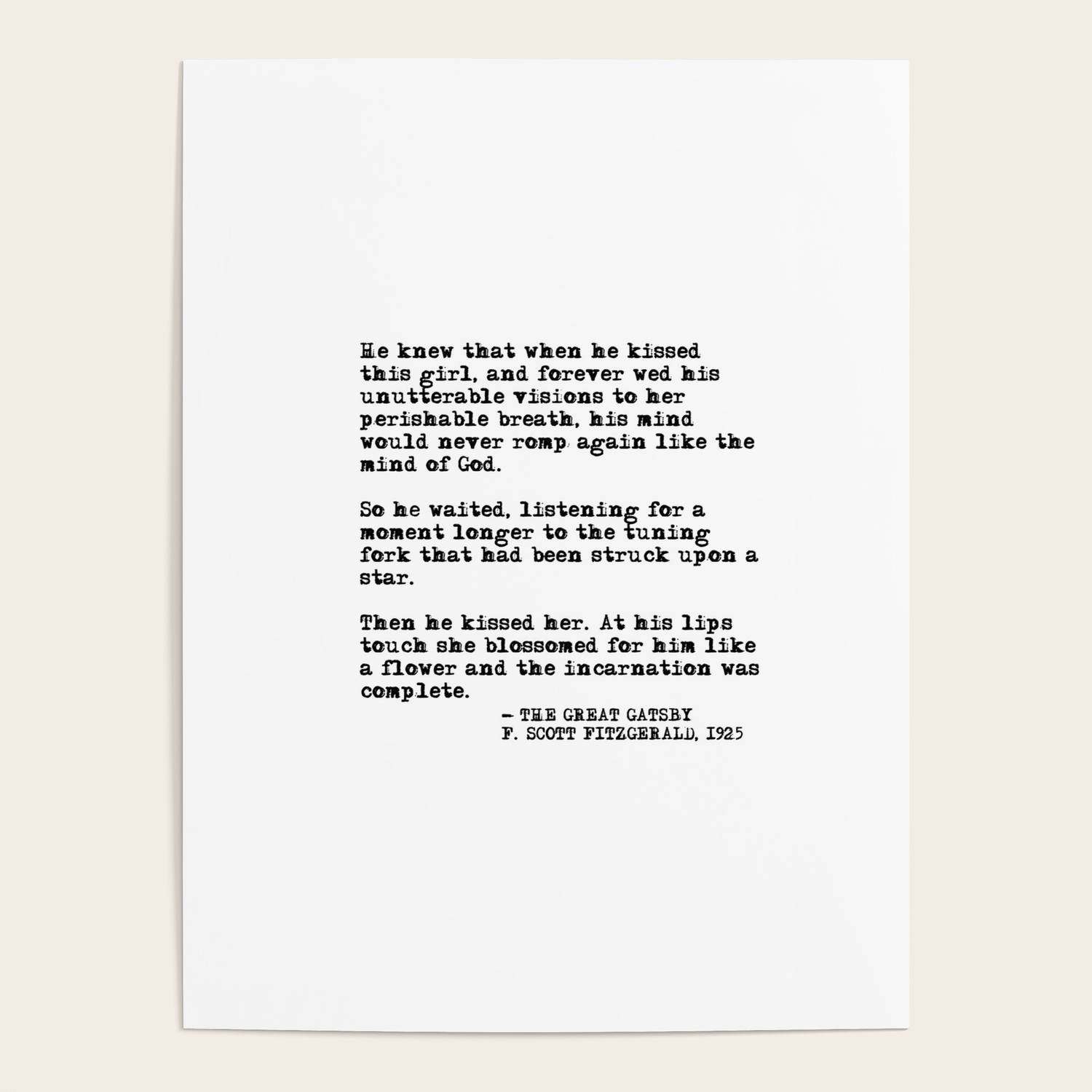When He Kissed This Girl The Great Gatsby Fitzgerald Quote Poster By Quoteme Society6